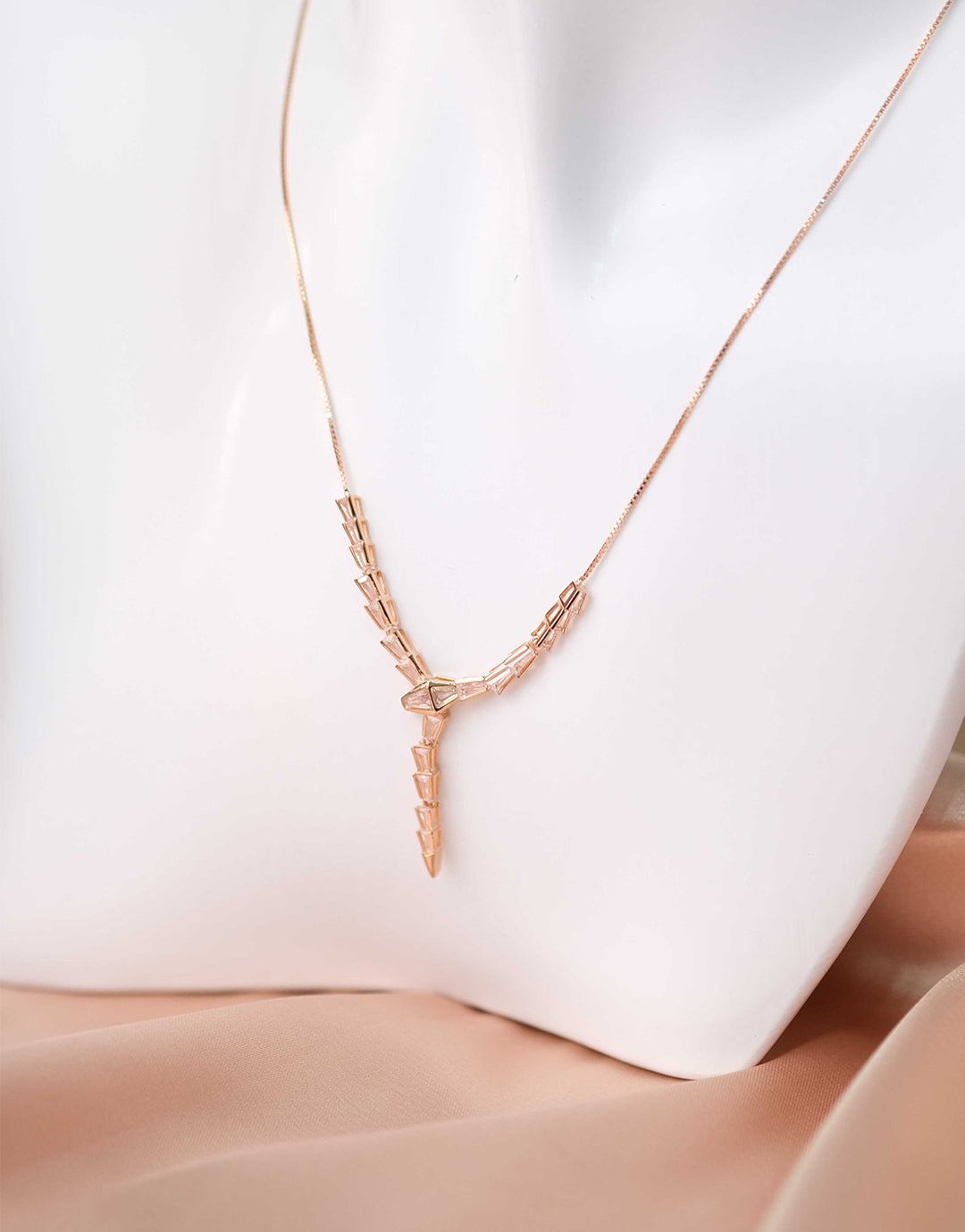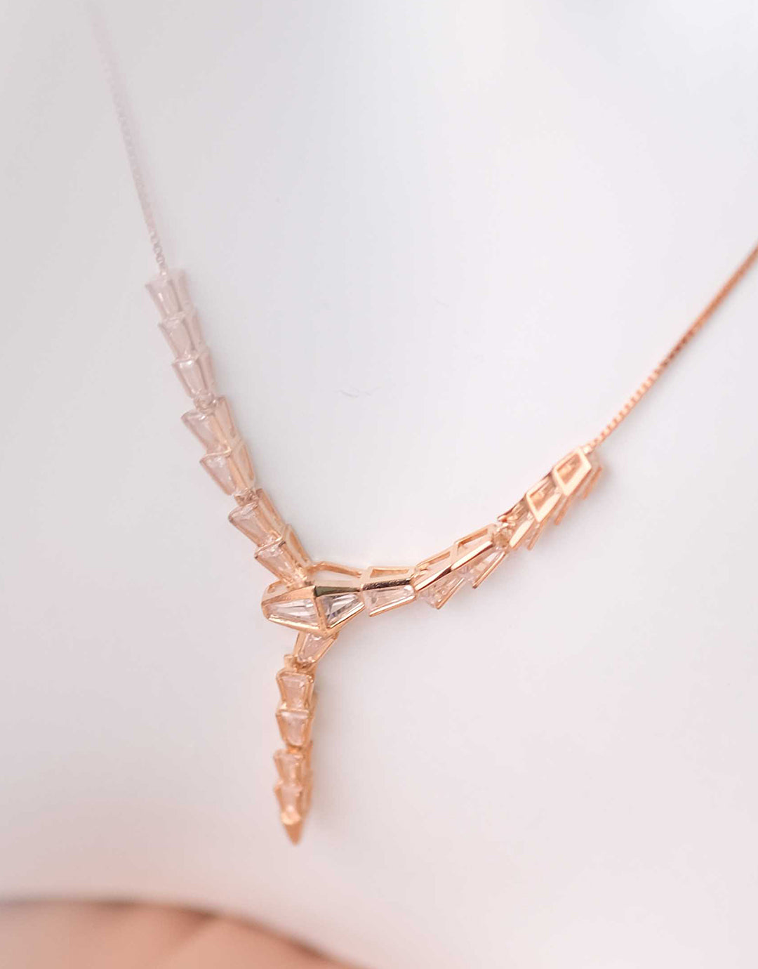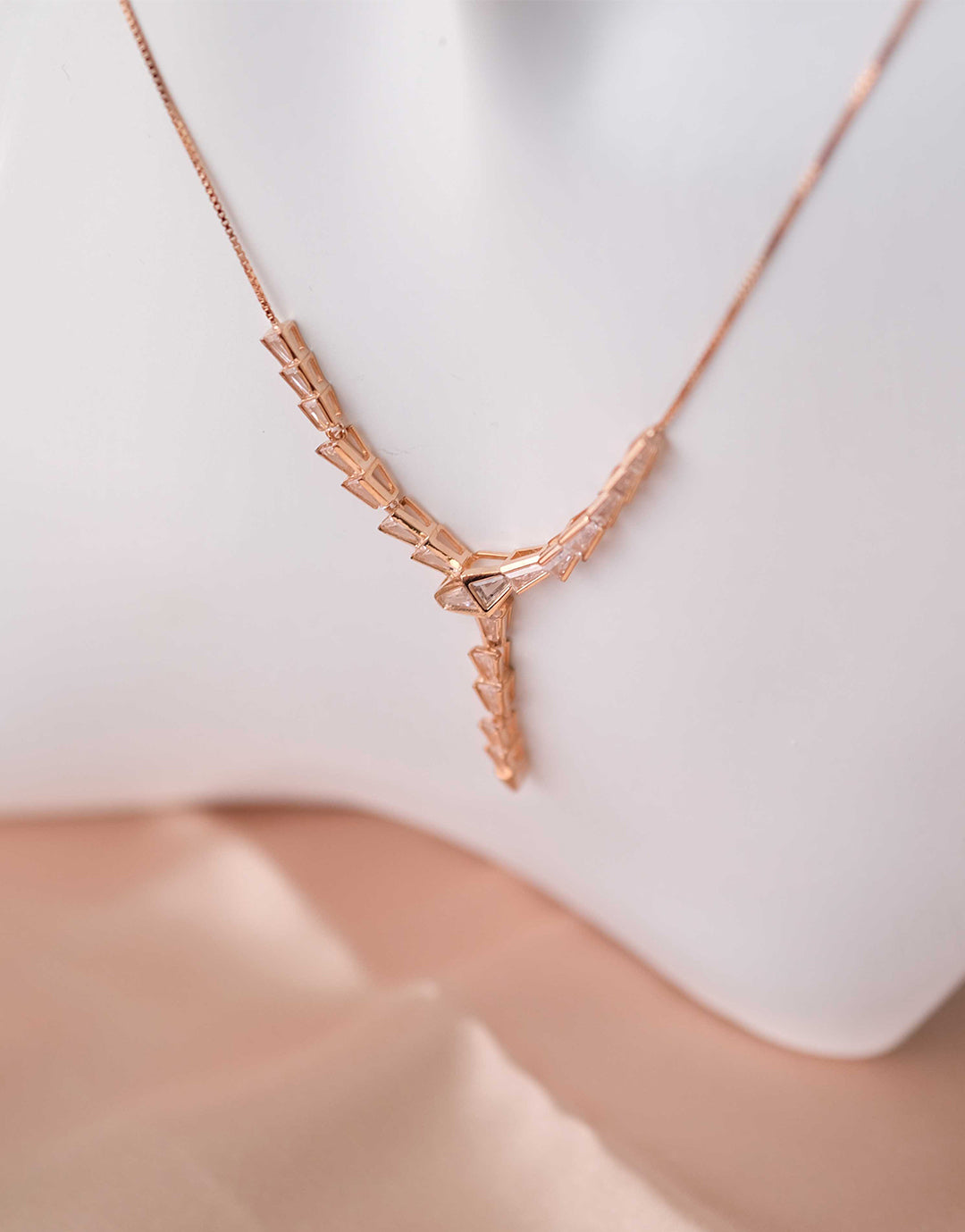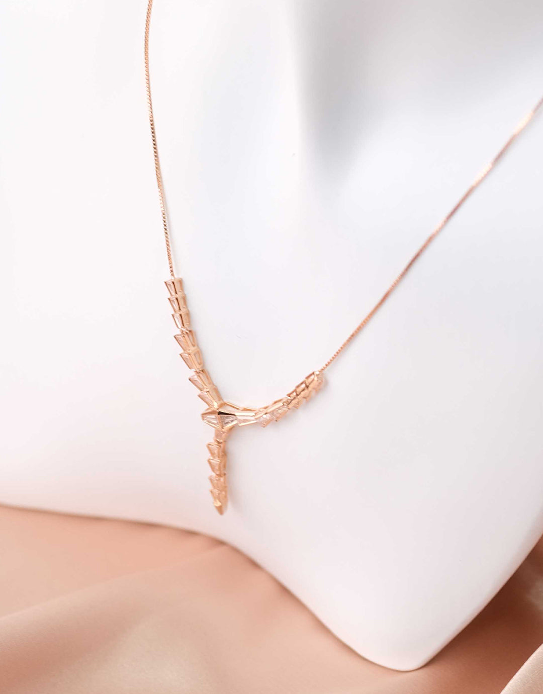 Gleam Trinity – Zircon 14K Rose Gold Plated 925 Silver Necklace