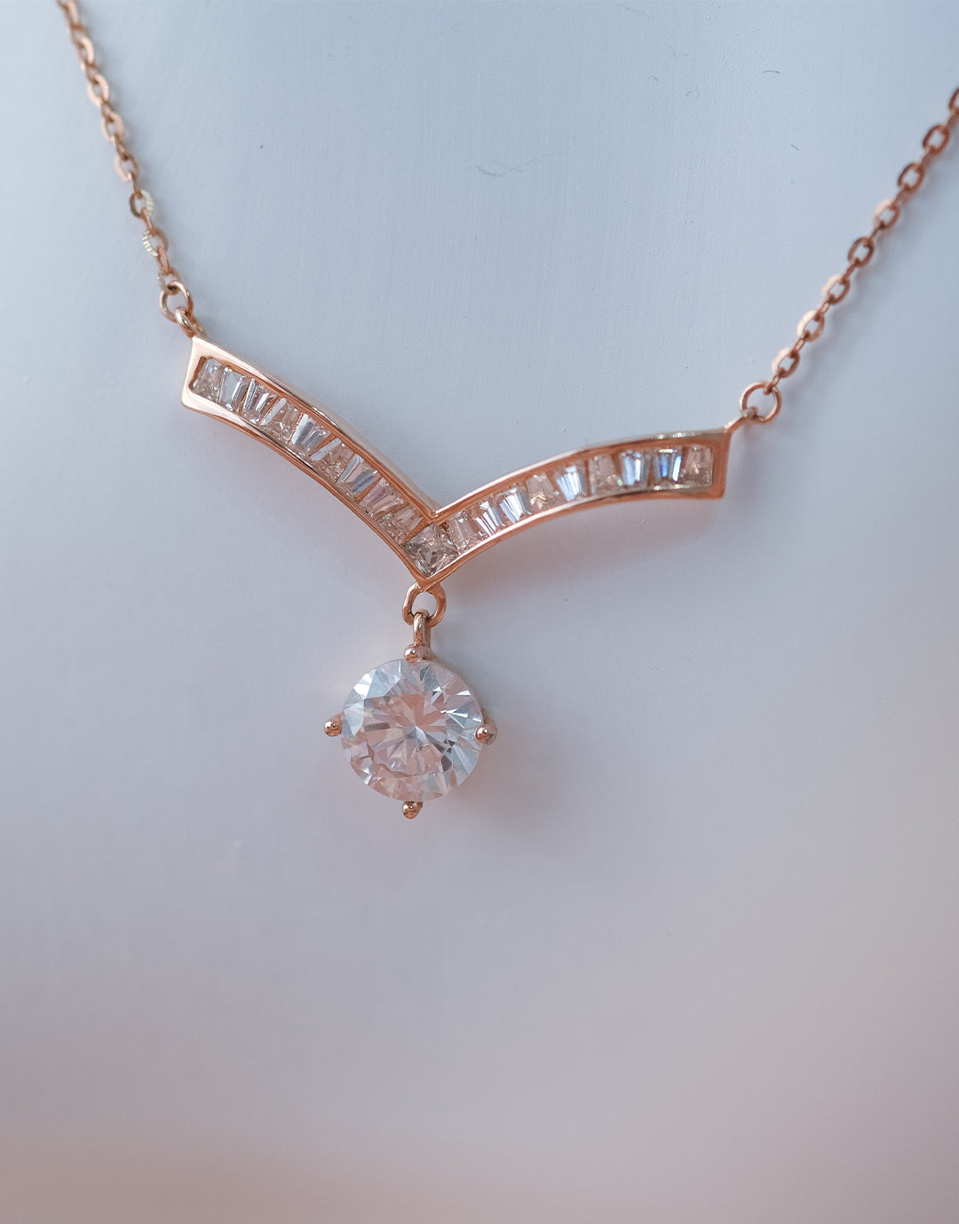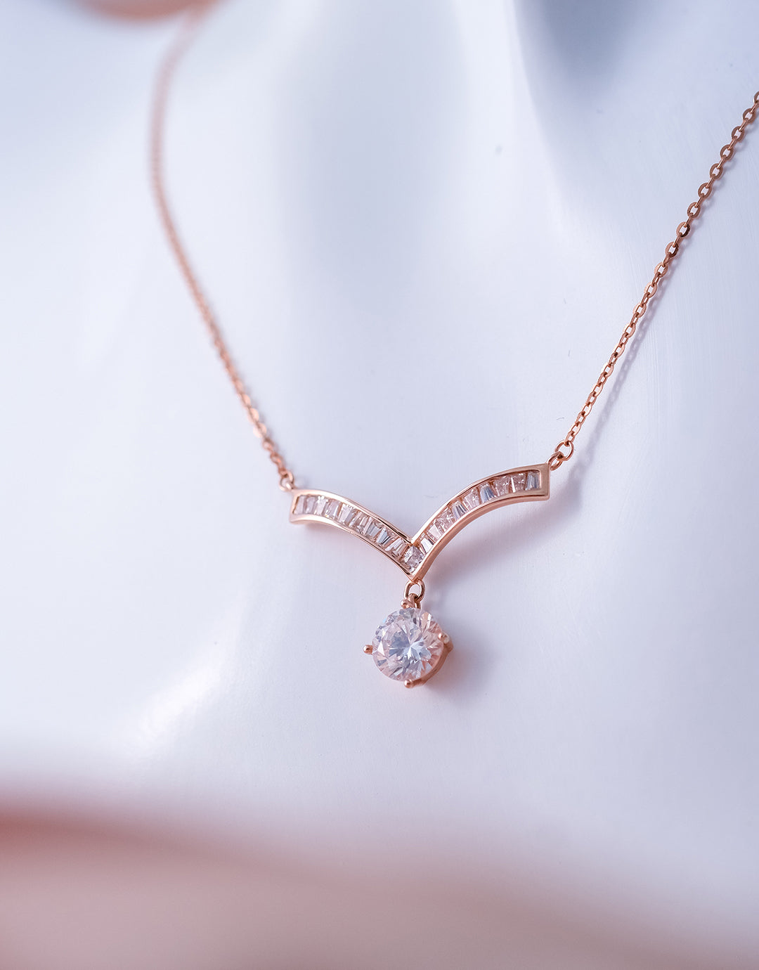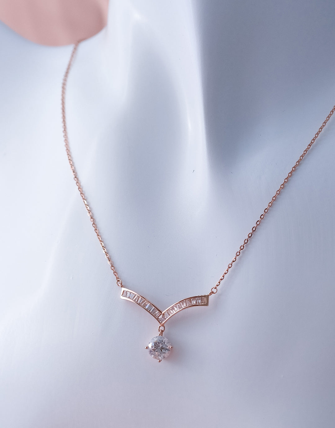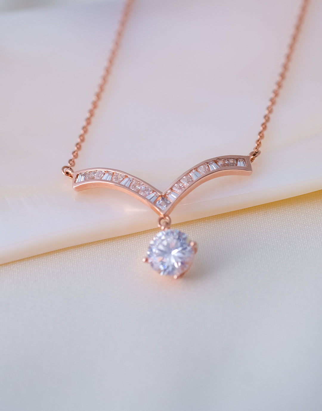 Vivid Sparkle – Zircon 14K Rose Gold Plated 925 Silver Necklace
