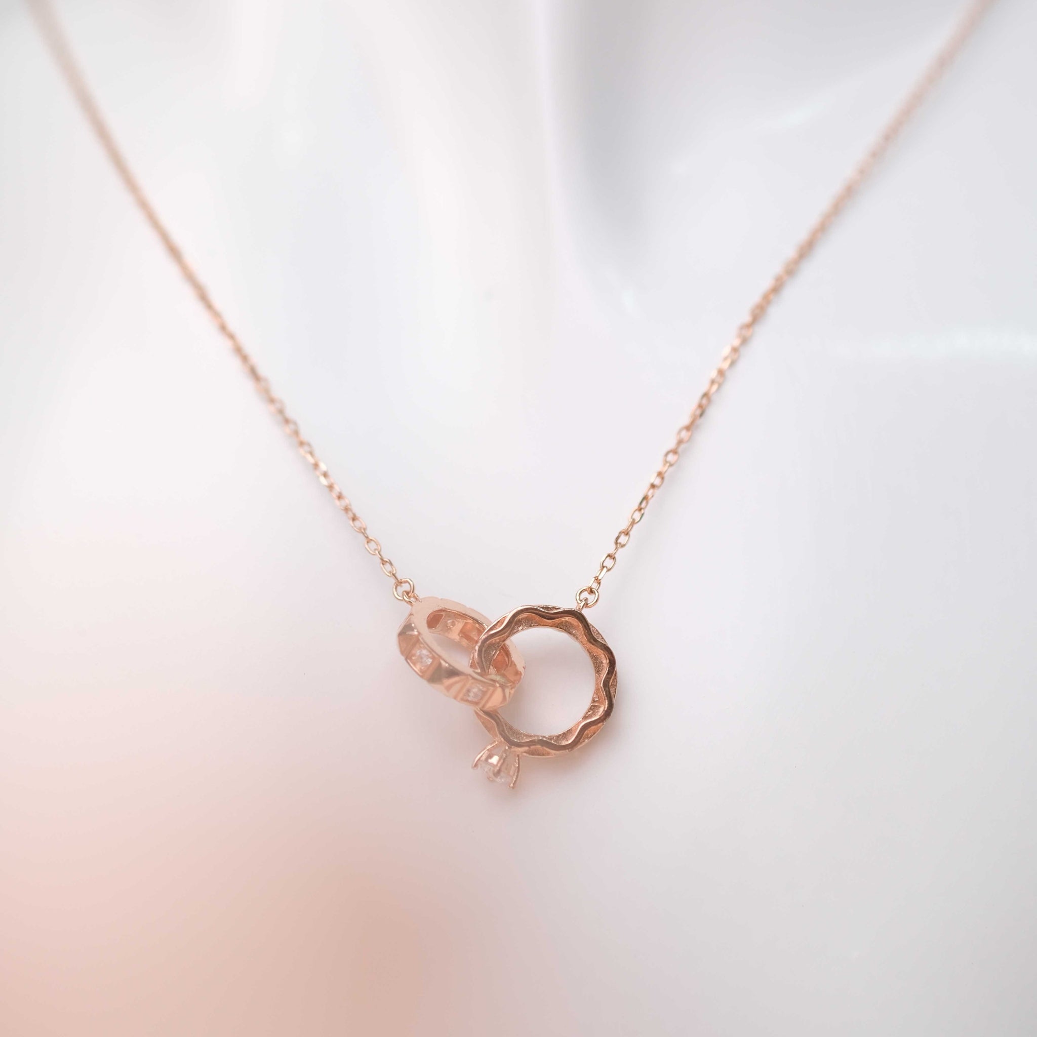 Inseparable Love necklace features an entwined design in 14K rose gold plated 925 silver, symbolising eternal connection and devotion. It's an ideal gift to express your unbreakable bond with a loved one.