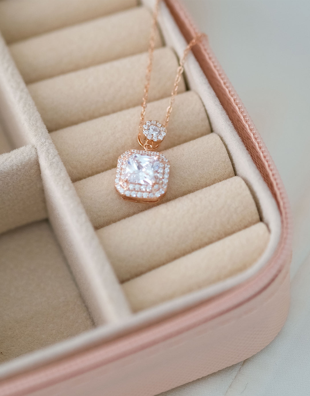 Most of our jewellery is crafted from high-quality 925 sterling silver, and many pieces are plated with 14K rose gold. We use a variety of gemstones including Zircon, Morganite, and Chalcedony to add beauty and uniqueness to each piece.
