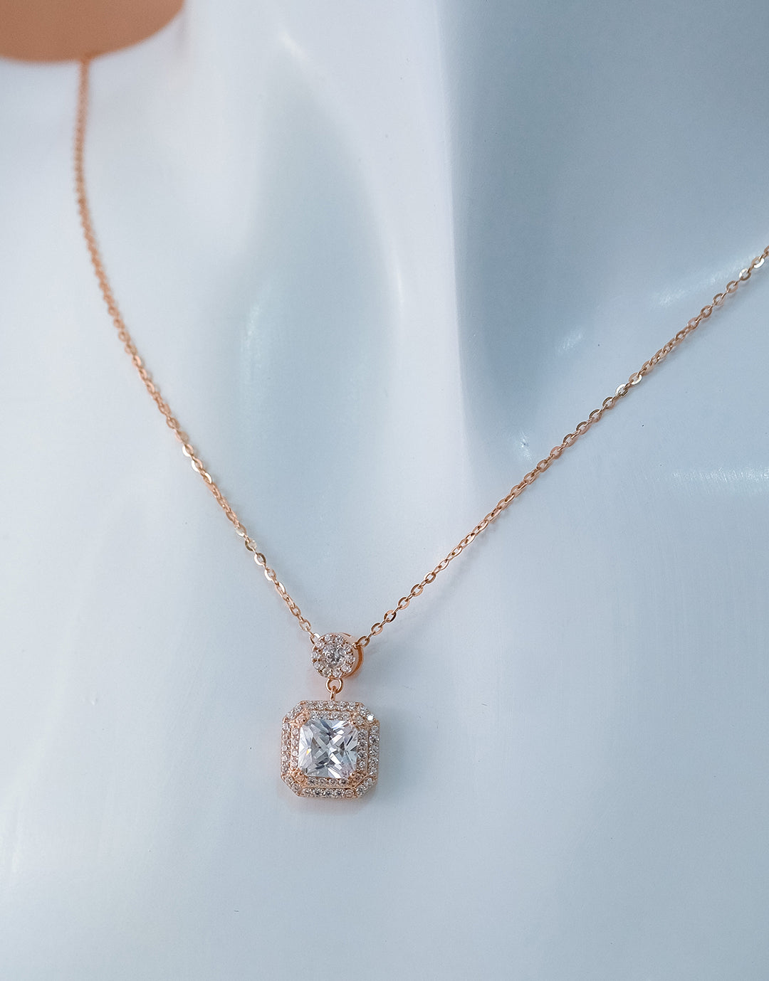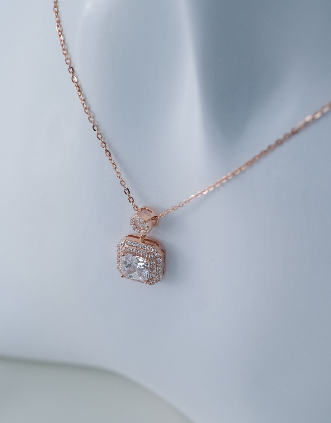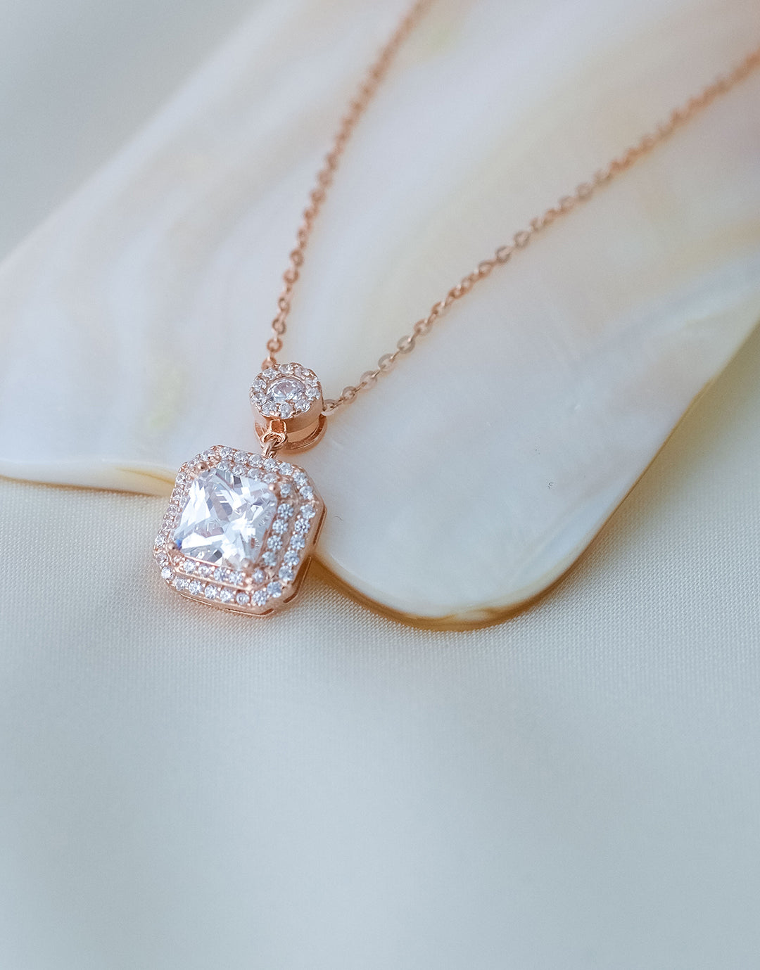 Dazzling Halo – Zircon 14K Rose Gold Plated 925 Silver Necklace